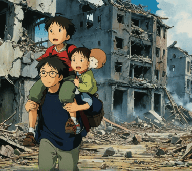 Al llegar, le dije a los niños que sería mejor mudarnos al campo, lejos de aquella ciudad destruida. «¡Montemos una granja, vivamos en el bosque! ¿No sería bonito oír el murmullo del río cada mañana?».